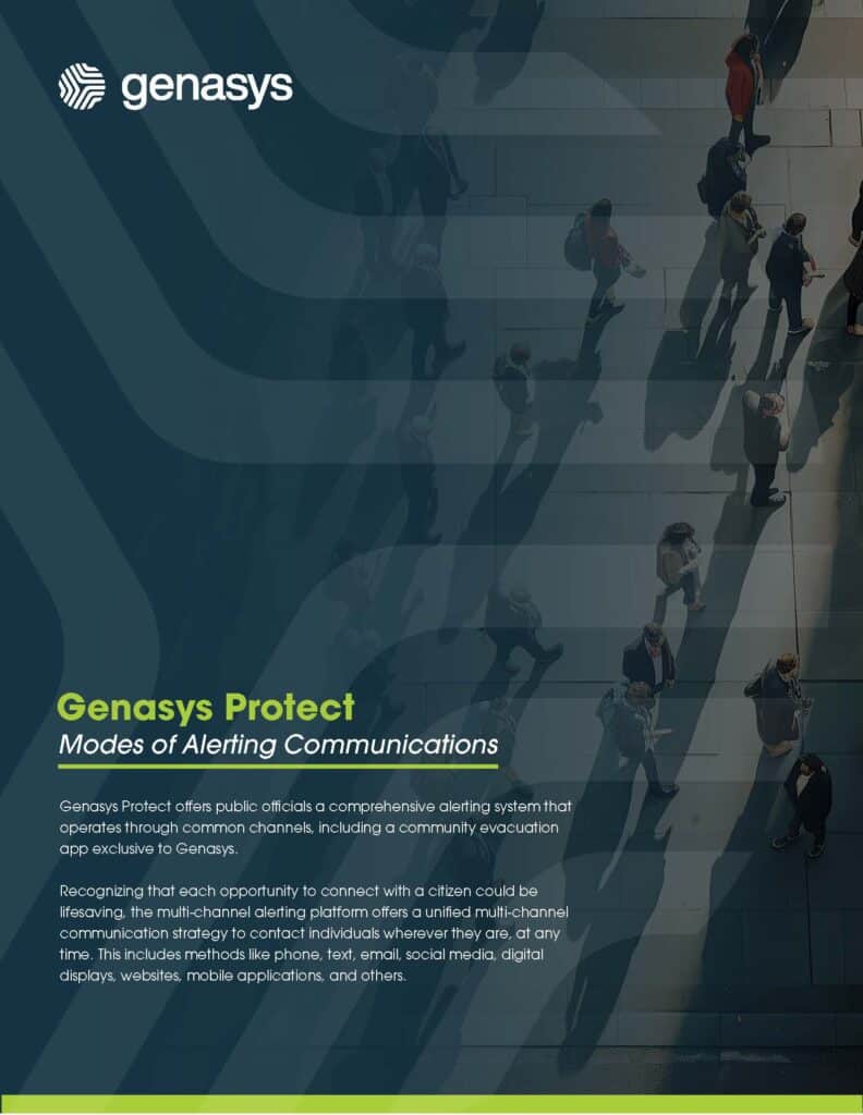 Genasys Protect offers public officials a comprehensive alerting system that operates through common channels, including phone, text, email, social media, digital displays, websites, mobile applications, and others.