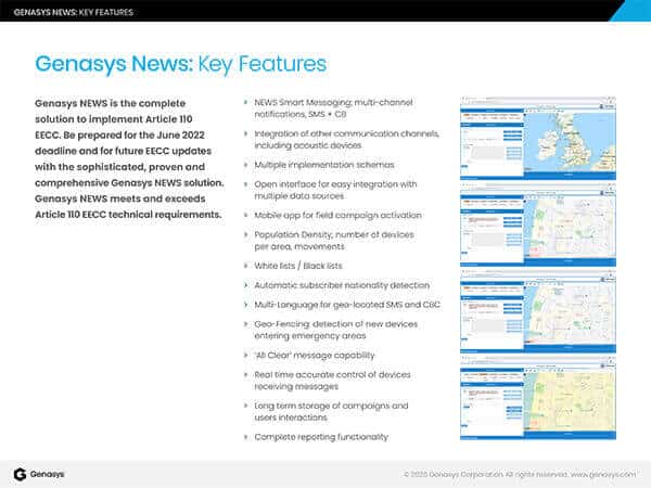 Be prepared for the June 2022 EECC technical requirements deadline and for future EECC updates with the sophisticated, proven and comprehensive Genasys NEWS solution.