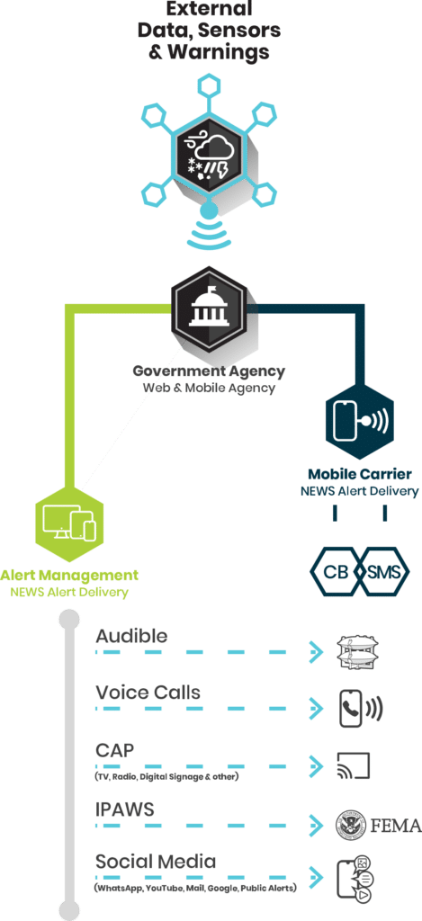 With direct access to the mobile carriers, NEWS enables government officials and emergency managers to deliver local, regional or nationwide alerts, warnings and notifications quickly and reliably.